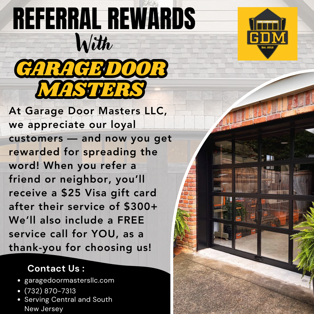 Discover great savings and exclusive deals with Garage Door Masters LLC! We’re proud to serve Central and South New Jersey with trusted residential and commercial garage door services backed by quality workmanship and exceptional customer care. Take advantage of our current offers — including discounts for seniors, first responders, military personnel, and veterans — when you schedule your next service. Whether you need a repair, installation, or routine maintenance, our team delivers reliable solutions that keep your garage door operating smoothly and safely. Don’t miss out — mention these offers when booking your appointment to enjoy the savings!